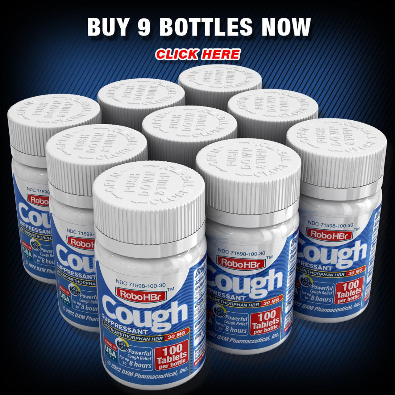 Robohbr Cough Suppressant, Hbr 30Mg, 100 Tablets Otc product 9 PACK
